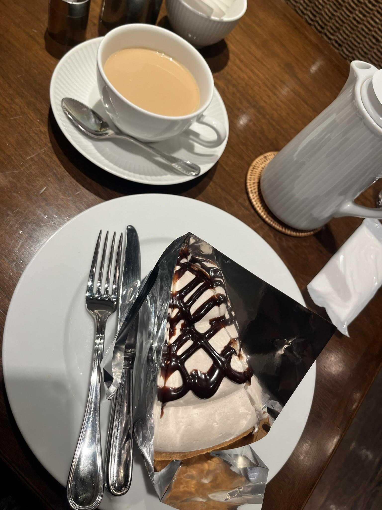 この日は、バナナクリームパイとロイヤルミルクティーをいただきました。