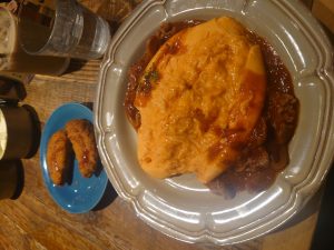 デミグラスソースはトマトの酸味が効いており、濃厚な卵とチーズソースが絶妙に絡み合って、ボリューム満点な一品でした。