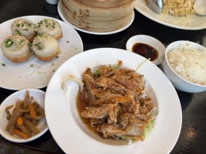 焼き小籠包+選べる主菜(ライス、スープ、小鉢、デザート付き)で油淋鶏を選びました。