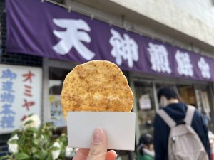 その名も【天神せんべい 大木屋】さんです!こちらの大木屋さんは亀戸駅から徒歩10分ほどの場所にあり、亀戸天神の門前に店舗を構えています。