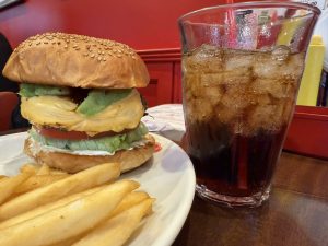 その中でも、創業以来不動の人気NO.1メニューは、“ロットバーガー”なのだとか。ロットバーガーは、ベーコン・エッグ・チーズ・パイナップルがトッピングされたアメリカンな1品です。サイドにはピクルス・ポテト・オニオンリングもついていますよ☆
