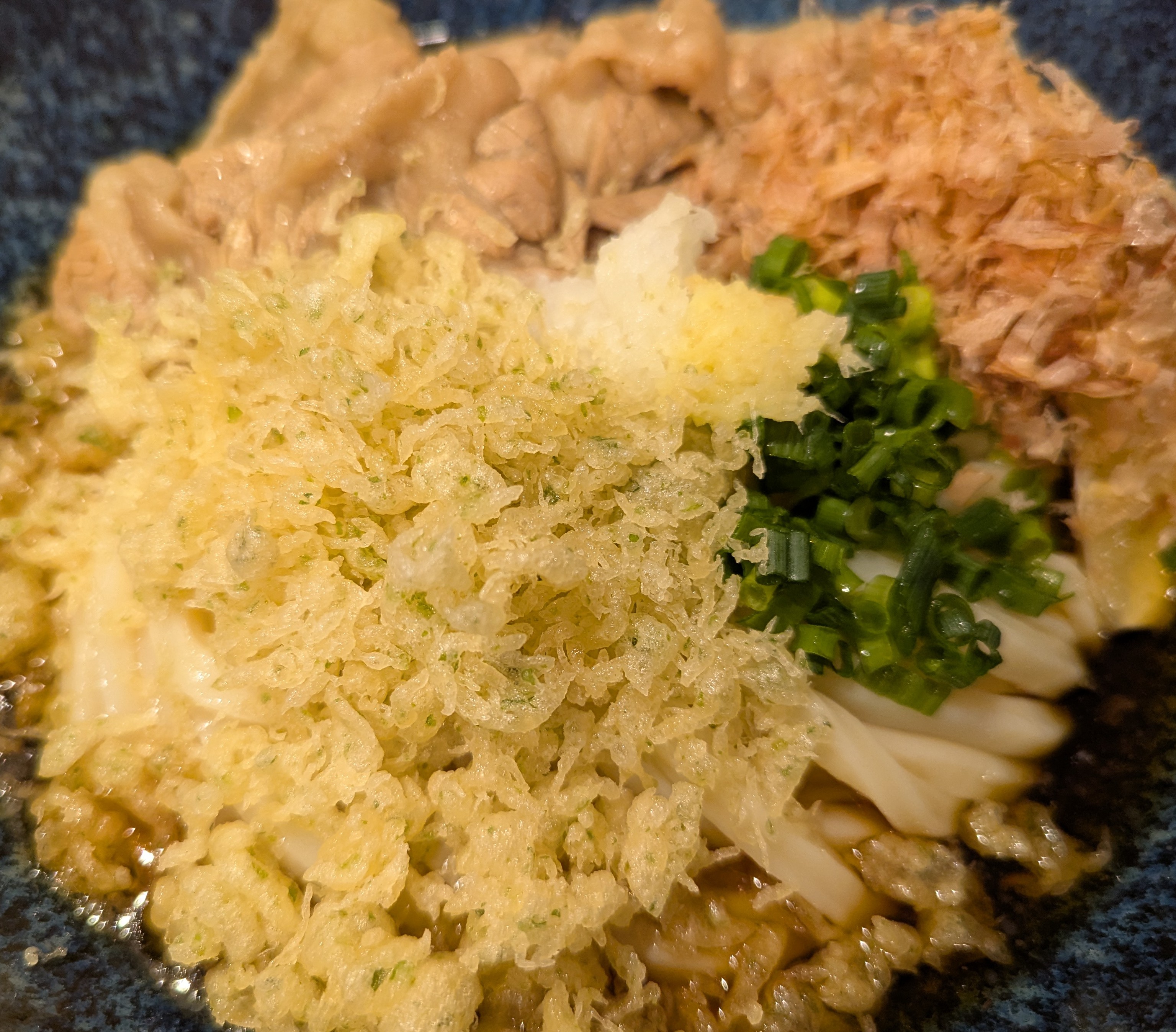 まず一口目で印象的なのは、冷水でしっかり締められたうどんのコシ。ツルッとした喉ごしが心地よく、暑い日でも箸が止まりません。冷やしにすることで、小麦の風味や麺の食感がより際立っているように感じました。